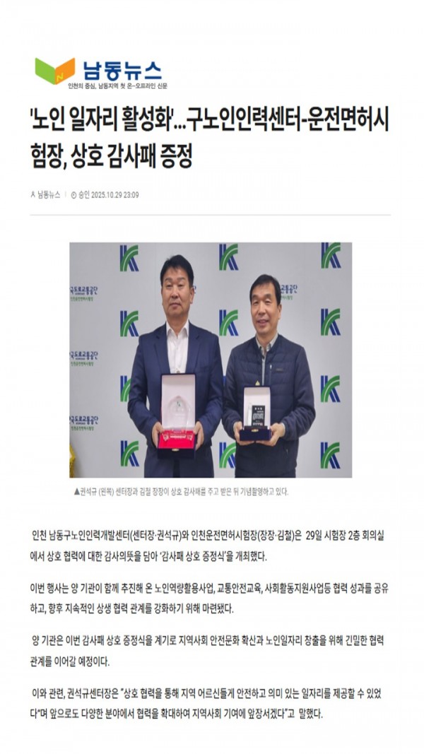 운전면허시험장 상호 감사패 증정 페이지 정보 작성자 김선영 작성일25-11-05 21:05 조회5회 댓글0건 관련링크 이전글 다음글 목록 본문 . 댓글목록 등록된 댓글이 없습니다. 이전글 다음글 목록