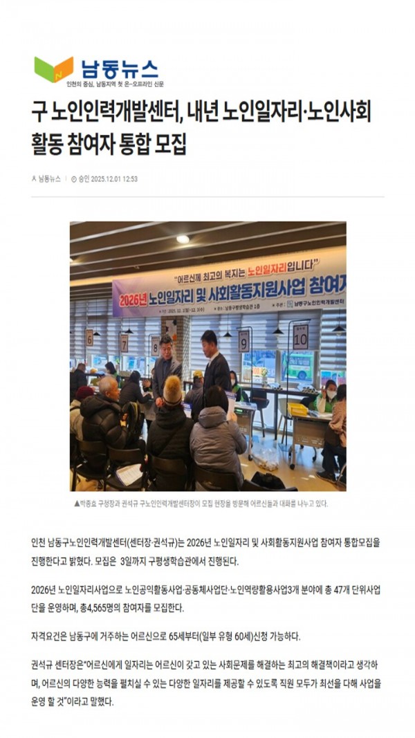 2026년 노인 일자리 및 노인 사회활동 참여자 통합 모집 페이지 정보 작성자 김선영 작성일25-12-04 20:38 조회88회 댓글0건 관련링크 이전글 다음글 목록 본문 . 댓글목록 등록된 댓글이 없습니다. 이전글 다음글 목록