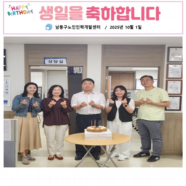 2025년 10월 직원생일 페이지 정보 작성자 김선영 작성일25-10-01 11:14 조회86회 댓글0건 관련링크 다음글 목록 본문 남동구노인인력개발센터(권석규·센터장)는 2025.10.01(수) 10월 생일자를 대상으로 축하의 시간을 가졌다 댓글목록 등록된 댓글이 없습니다. 다음글 목록